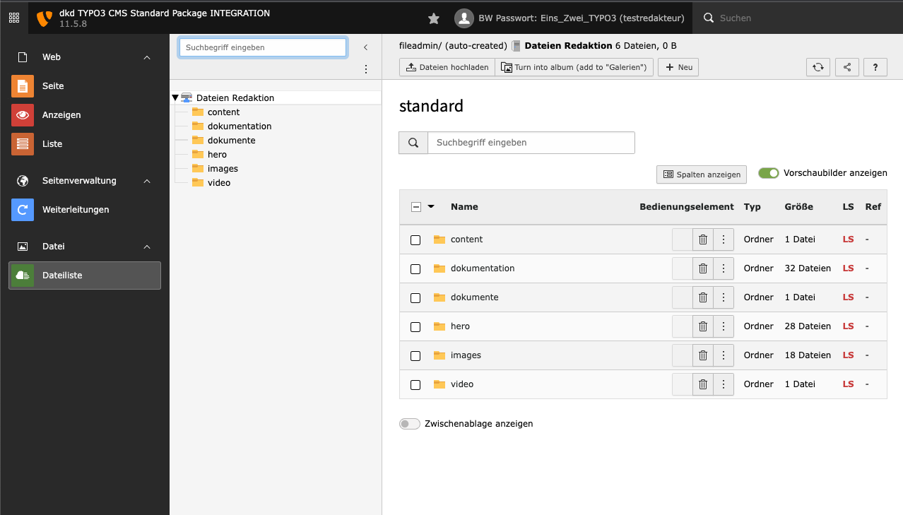 Bilder, aber auch andere Dokumente wie z.B. PDF-Dateien zum Download sind für Webseiten unverzichtbar. Damit sie in TYPO3 verwendet werden können müssen Sie zuerst auf den Server hochgeladen werden.