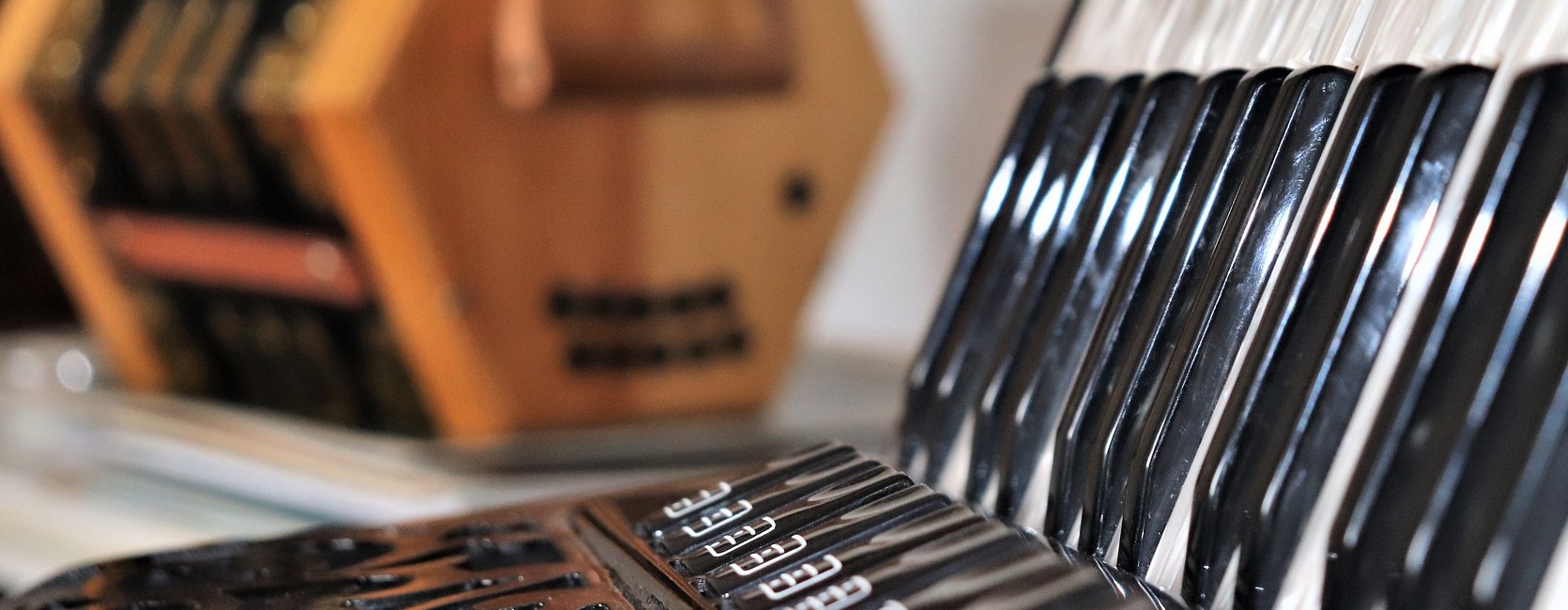 Hier, im Akkordeon, spielen wir abwechselnd Piratenlieder und Französische Cafémusik.
